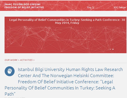 The Istanbul Bilgi University Human Rights Law Research Center and the Norwegian Helsinki Committee: Freedom of Belief Initiative held a Conference on “Legal Personality of Belief Communities in Turkey: Seeking a Path” on May 30th, 2014 at the İstanbul Bilgi University Dolapdere Campus. The goal of the conference was to increase understanding of the right to acquire legal personality, which remains key for the effective protection of the right to freedom of religion or belief for all belief communities in Turkey. The list of speakers and sessions can be found on the conference website. Simultaneous translation was provided.
